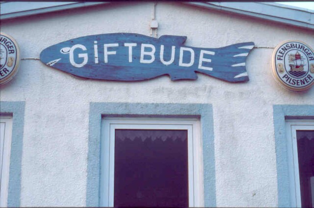 Hier ist der Hund begraben. Eine Kneipe mit dem schönen Namen "Giftbude", und die hat dicht. Drinnen das letzte halb ausgetrunkene Bier auf dem Tisch, Tafeln mit der Speisekarte, auf der alles 26 Mark kostet: Butt mit Bratkartoffeln, Aal mit Bratkartoffeln, Scholle mit Bratkartoffeln. Aber heut gehts dem Wirt wohl nicht gut. Hat nicht mal das letzte Bier ganz geschafft.