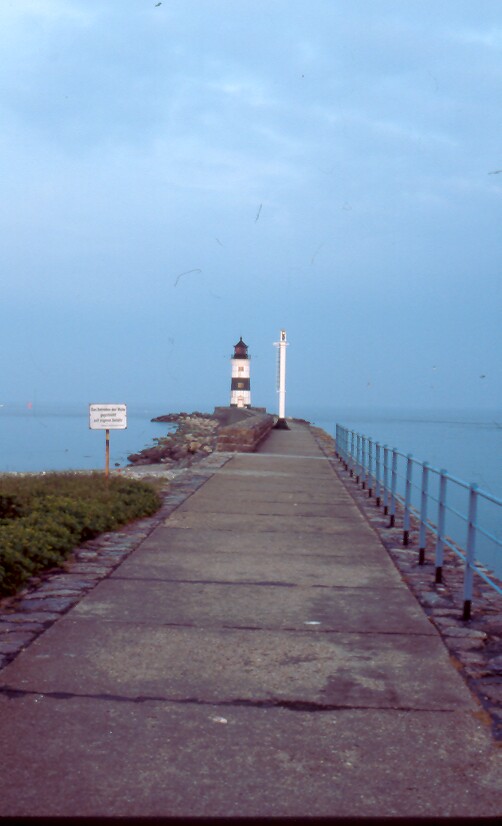 Nach 6 Stunden und 27 Seemeilen Leuchtturm und Mündung Schlei voraus. Wie schon 2 Jahre vorher mit dem Folkeboot erscheint mir die Szenerie wie aus einem Bild des amerikanischen Malers Hopper (malt vorwiegend einsame Großstadtnachtszenen oder beängstigend erstarrt bis gefroren wirkende Küstenbilder).